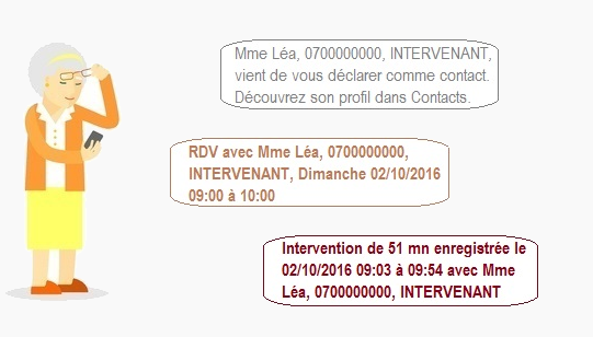 En le faisant, un SMS de prise de contact est envoyé au bénéficiaire, qui est alors informé du profil de l’intervenant (nom et téléphone au minimum, mini-CV…).